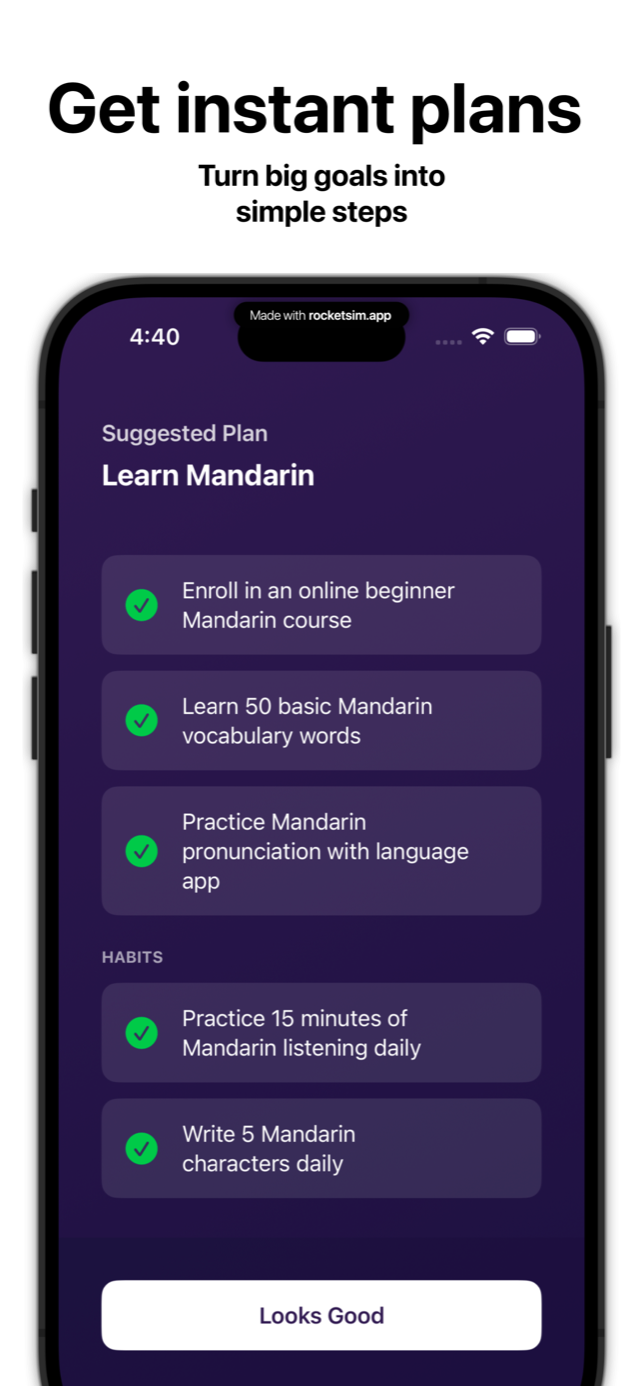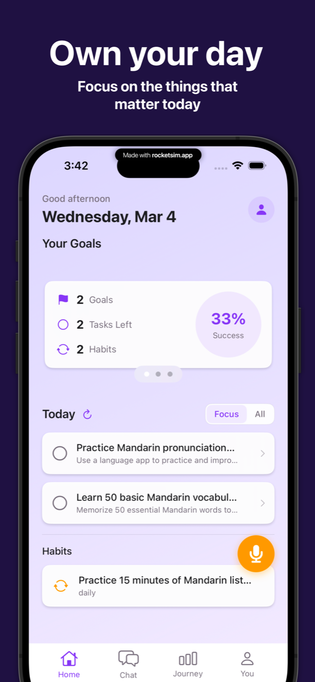 Set meaningful goals and let Kalya break them into actionable daily tasks. See your progress and stay focused on what matters.