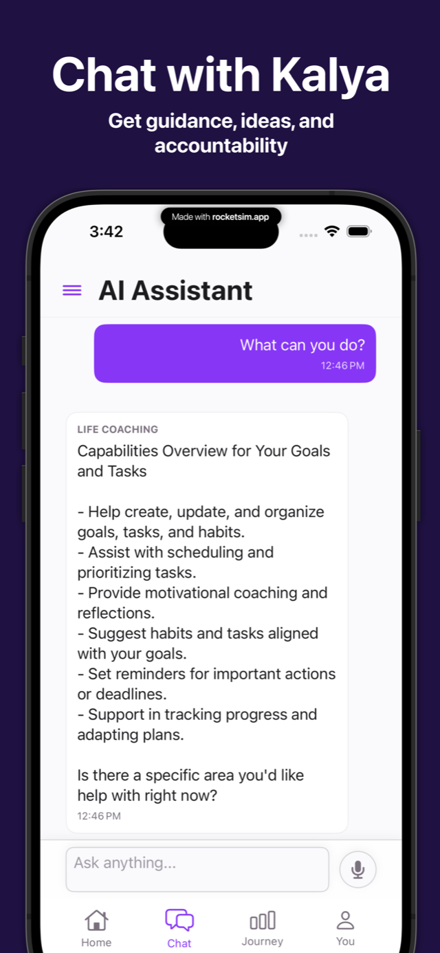 Kalya is your personal AI coach, ready to help you build the life you want — one goal, one habit, one day at a time.
