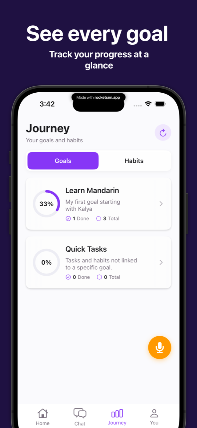 Just talk. Kalya listens, understands, and takes action. Create goals, update tasks, or ask for advice — all by voice.